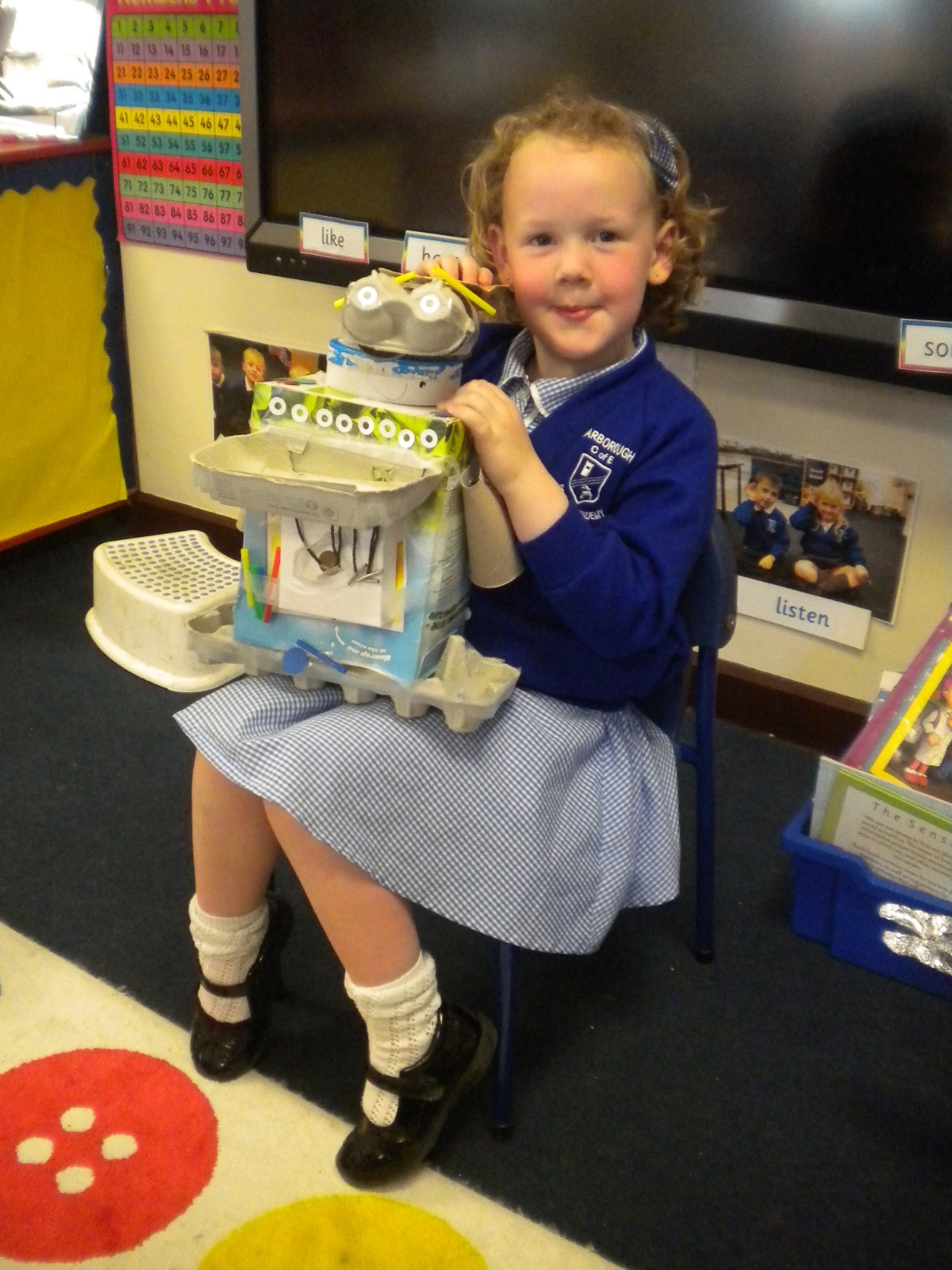 As part of their home learning, the children were given the challenge of making a robot that had a moving part!