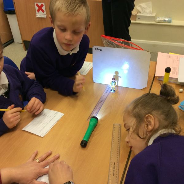 Our latest experiment was to find out what happened to the shadow when the light source was closer or further away from an object.