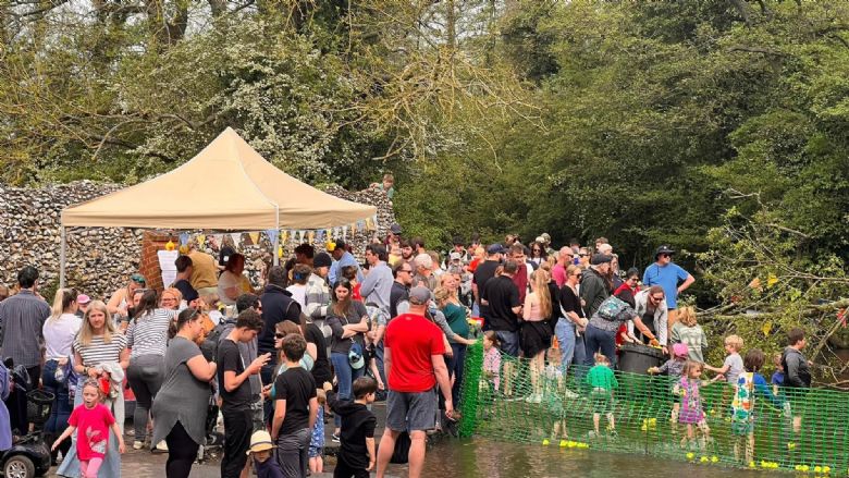 On Sunday May 12th, the sun shone, there was hardly a breath of wind as 1,000 ducks (rubber plastic ones!) took to the River Nar and floated gracefully down to the finish line.