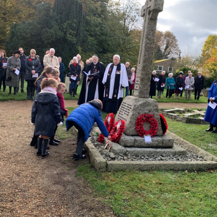 Libby D, Kayla-Grace, Loa, Libby P and Cody laying the poppies at the Remembrance Sunday service.
