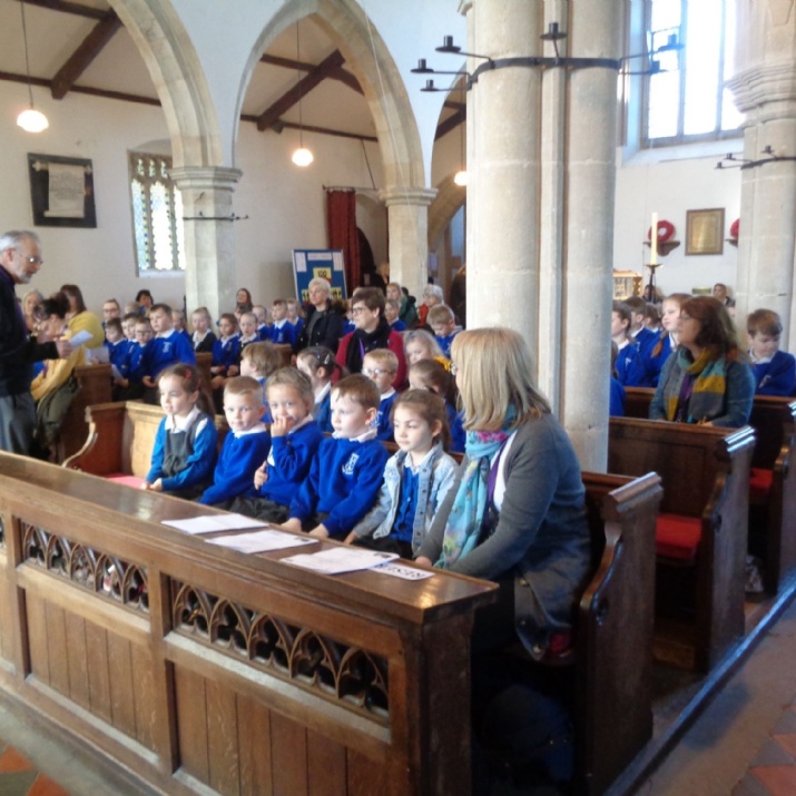 The children listening to Reverend Cannon Nairn's welcome.