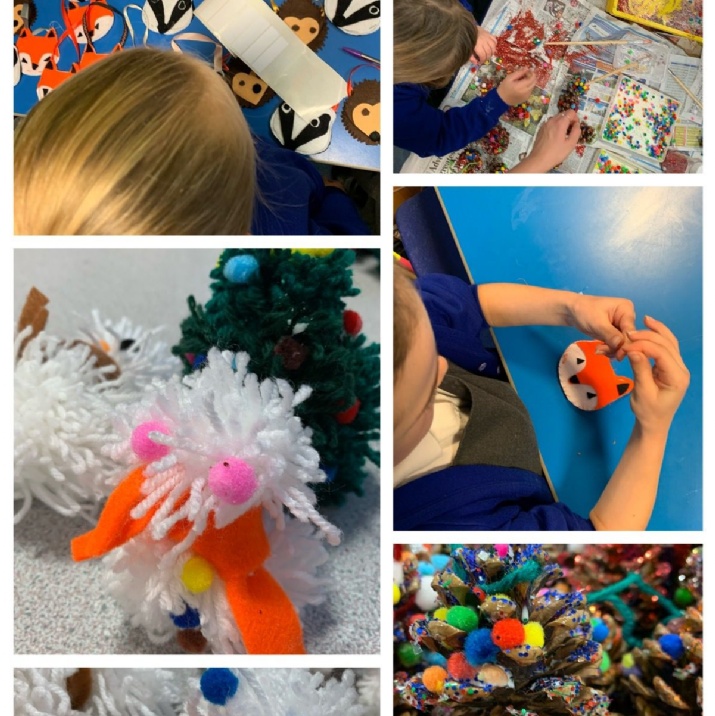 Activities were resourced, organised and delivered by our fantastic team of parent helpers, including: sewing felt woodland creature hanging decorations, making Pom-Pom snowmen and Christmas trees, decorating pine cones, baking Christmas biscuits and making reindeer candy cane decorations!