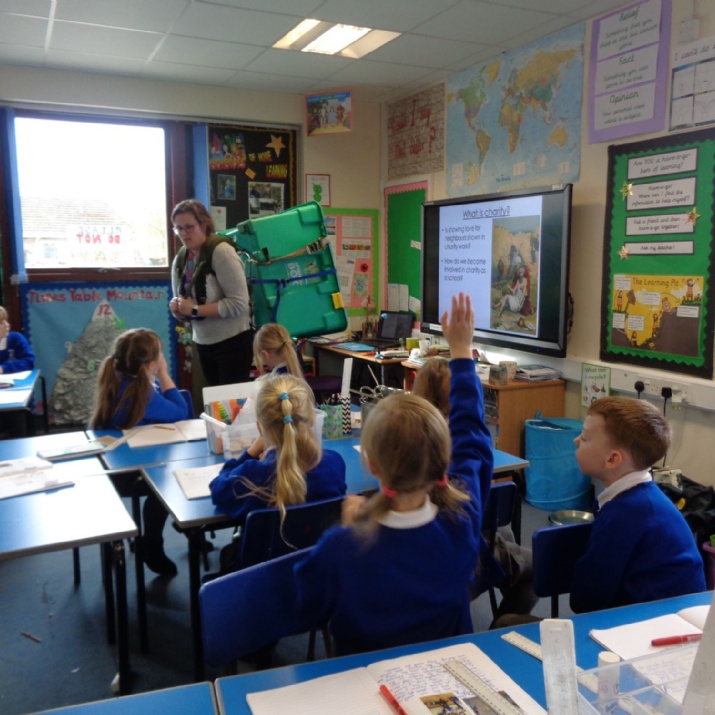 Badger Class during their Religious Studies lesson met with Mrs Houlder-Moat, Families worker at RAF Marham Chaplaincy, who will be walking 35 miles along Peddars Way from Hunstanton to Watton to raise money for the charity Shelter Box.